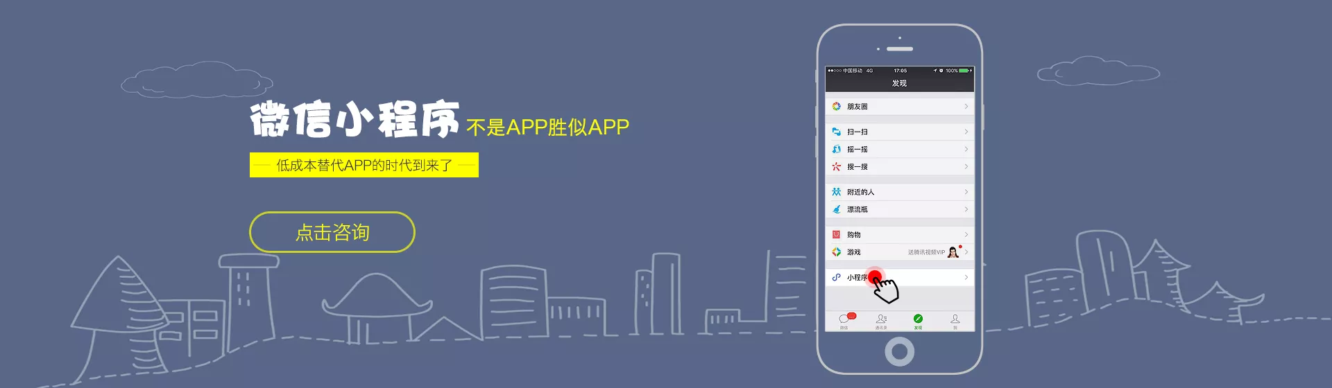 微信小程序,小程序的一种,英文名Wechat Mini Program,是一种不需要下载安装即可使用的应用,它实现了应用“触手可及”的梦想,用户扫一扫或搜一下即可打开应用。 全面开放申请后,主体类型为企业、政府、媒体、其他组织或个人的开发者,均可申请注册小程序。微信小程序、微信订阅号、微信服务号、微信企业号是并行的体系。
